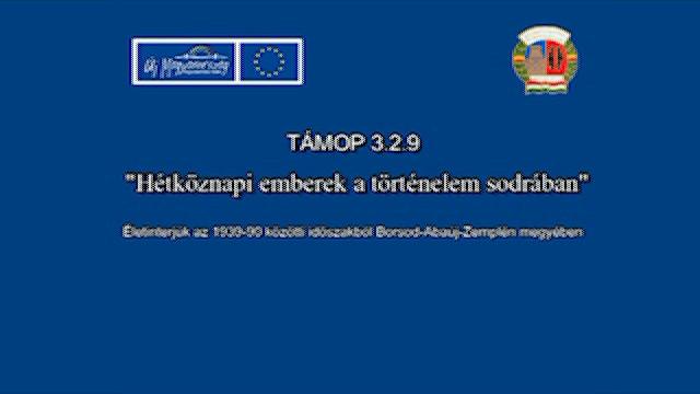Az interjúalany beszél családjáról, a II. világháborúról (0:05), kitérve a német többségű falu kitelepítésére (2:12), majd Kaposvár bombázására, amit személyesen élt át (5:45). Szól a háborús hétköznapokról (10:10) és az inflációról és az 1950-es évek szegénységéről (14:50). Beszél az ötvenes évek elégedetlenségéről és az 1956-os forradalommal kapcsolatos emlékeiről. Elmeséli, hogyan vetődött fel a párttagokban a párttagkönyvtől való megszabadulás gondolata (14:50). Beszél arról, miként tudakozódtak a budapesti hírekről (22:30), valamint említi az osztályidegenek kategóriáját is (24:25). Elmeséli, hogy 1949-ben bajba került az iskolában, mert azt terjesztették róla, hogy osztályidegen (28:30). Végül 1956-ot értékeli, felidézi, hogyan „gyűjtöttek aláírást” Mindszenty József ellen az iskolában, valamint röviden beszél iskolai pályafutásáról is (30:48).