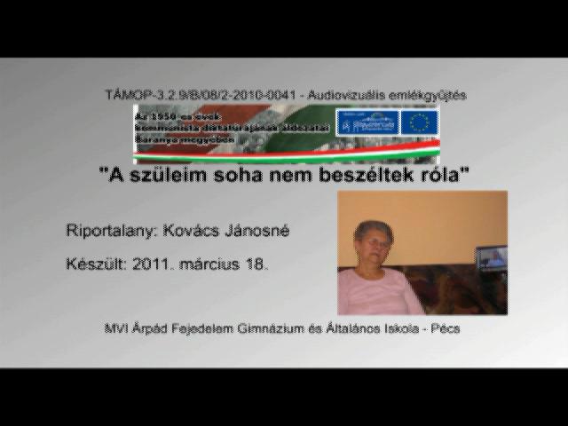 Az interjúalany először édesapja katonai pályájáról, a Don-kanyarról, elfogatásáról és szabadulásáról (1:00). Beszámol édesapja többszöri sebesüléseiről, valamint arról, hogy Berlinben amerikai hadifogságba esett, de hazaengedték, mert nem találták semmiben vétkesnek (4:04). Szól a háború utáni évekről, arról, hogyan fosztotta meg az Alkotmány édesapját a diplomájától, hogyan kellett suszterként elhelyezkedni, s ez miként tette tönkre az életét (6:12). Szól az 1956-os forradalom eseményeiről, arról, hogyan akartak először csatlakozni, majd arról, miként beszélte le apja a helyieket, hogy oroszokra támadjanak (10:20). Az interjúalany rátér saját osztályidegen származására és oktatására (15:50). Szól a katonai főiskoláról, a hadsereg hatalmi viszonyairól, és arról, hogy végül mégis sikerült feljebb jutnia a ranglétrán a származása ellenére is (18:26). Szól arról, miként helyezték Salgótarjánba politikai célzattal, valamint azt, hogy egy orvosi vizsgálat ürügyén hogyan tartották hetekig gyakorlatilag fogva az 1980-as években (30:00). A hadsereg és az ország kommunista irányításának tragédiáját is elemzi (37:50). Végül visszatér saját második világháborús élményeire, valamint szól a környező országok katonáival való kapcsolatról, a prágai tavasz eseményeit is érintve (45:00).