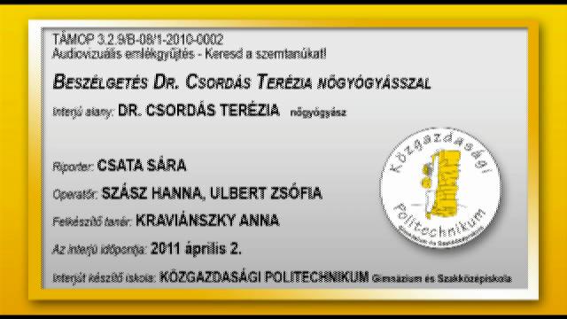 Az interjúalany 1925-ben született Bakonysárkányban (Komárom-Esztergom megye). Beszél gyermekkoráról, családjáról. (03:30) A család Salgótarjánba költözött, az interjúalany itt kezdte meg iskoláit. Részletesen beszél az iskolai körülményekről. (07:00) A polgári iskola után rövid ideig varrónő volt, majd elvégezte a rimaszombati apácák 2 éves kereskedelmi képzését. Mivel közeledett a II. világháború, a férfiakat behívták katonának, így az interjúalanynak is jó állása lett. (09:42) Elmondja, hogyan élte át a II. világháborút. 1944 decemberében szállták meg Rimaszombatot az oroszok. Ekkor még folytak a harcok. Részletesen beszél az ekkor uralkodó körülményekről. (19:08) AZ '50-es években Miskolcra költözött, ott sok volta az üres lakás. A Rákosi-rendszer nagyon idegen volt, nem volt hozzászokva senki a diktatúrához, rosszak voltak az életkörülmények. Az interjúalany adóellenőrként dolgozott, ekkor ismerkedett meg férjével. (24:06) 1951-ben ment férjhez, még ekkor is nagyon rosszak voltak a viszonyok. (30:10) Beszél az 1956-os miskolci eseményekről. (34:52) Beszél a család mindennapjairól a forradalom után. (36:00) A rendszerváltoztatást már külső szemlélőként élte meg. A család helyzete javult. (37:48)