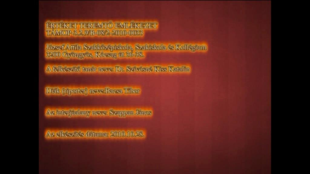 Az interjúalany beszél arról, hogyan fogadta 18 évesen a második világháború kitörését (0:11), majd arról, hogyan élt túl éppenhogy egy légitámadást (1:50). Szól arról, hogy bemérőként hogyan segítette a tüzérség munkáját (5:10), valamint arról, hogyan vitték Budapestre, és hogyan kezdődött meg a főváros ostroma, és miként esett orosz hadifogságba (8:08). Szól kifosztásáról, a szovjet katonák viselkedéséről (12:52). Visszatér Budapest ostromára, a kitörési kísérlet tragédiájára (17:04). Szól arról, hogyan vitték ki a Kaukázusba hadifogolyként (19:15), és arról, hogy milyen kevés élelem mellett mennyit kellett dolgozni (21:50). Beszél arról, hogy mikortól tudott kapcsolatot teremteni családjával, akikkel kölcsönösen halottnak hitték egymást (23:20). Beszél hazatéréséről 1947 nyarán, a kommunistákra való kötelező leszavazásról (27:05), majd arról, hogy mivel foglalkozott hazatérése után (30:50). Végül családjuk kulákká nyilvánításáról, a szövetkezetesítésről, valamint a hit és a kommunizmus összeférhetetlenségéről szól (31:55).