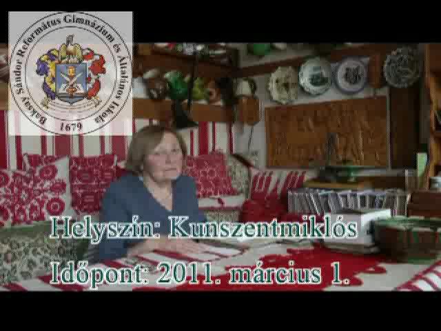 Az interjúalany 1926-ban született Szentesen. Beszél földművelő szüleiről, gyermekkoráról, tanyasi iskolában töltött diákéveiről. (01:26) Később szentesi iskolában tanult. (03:02) Mivel a családnak nem volt rá pénze, az interjúalany nem tanulhatott tovább. Ferihegyre költöztek, ahol lovaskocsit vezetett. Ezután Romániába kerültek, ahol a lakosság nem fogadta be őket, a kútjukat is megmérgezték. Az egész család lebetegedett, anyja, nagyapja és egy lovász meghalt. (07:10) Ezután nagyanyja nevelte Szentesen, apja újranősült, mostohája vele volt egy idős. (09:18) Gyógyszertárban dolgozott, de a német megszállás után a zsidó gyógyszerészt elhurcolták (az időpontra rosszul emlékszik!), így alkalmi munkákat kellett vállalnia. (09:38) A Rákosi-korszakban mezőgazdasági munkákat végzett, de a kemény beszolgáltatási rendszer miatt szinte minden terményt elvettek. (Az interjúalany a beszolgáltatások időszakát tévesen 1943-ra teszi!) (10:32) Beszél szovjet megszállásról. A lakosságot hídépítési munkára kényszerítették. Később az erőszakoskodó katonák elől az interjúalanynak bujkálnia kellett. (16:26) Későbbi férjét három évre elvitték katonának, miután visszatért a szolgálatból mozdonyfűtő lett. 1945-ben vette el az interjúalanyt. (20:00) Nehezen tudtak letelepedni, először a nagyszülőknél laktak, majd albérletbe mentek. Beszél mindennapi nehéz életükről, három kisgyermeküknek is a földön kellett dolgoznia. A férj egy idő után mozdonyvezető lett, akkor javultak életkörülményeik. (23:46) Legidősebb fia vízvezetékszerelő, lánya könyvelő, kisebbik fia mozdonyvezető lett. (25:08) Az interjúalany csak otthon tudott dolgozni, amíg a gyermekeit nevelte. (26:52) Később üzemben végzett kézművesmunkákat. Ezután gyári bedolgozó lett. Közben állatokat nevelt. Nagy nehézségek árán sikerült a családnak egy kertes házat vennie. (29:20) A férj 50 éves korában agyvérzést kapott, ápolásra szorult. Ezután minden munkát az interjúalanynak kellett elvégeznie. 1981-es nyugdíjazása után is még öt évig dolgozott. Férje halála után társasházba költözött. (30:42) A rokonság nagy része már meghalt, csupán gyerekei és unokái élnek. (33:06) Az 1956-os eseményekről a rádióból értesült. (Az angol-magyar 6:3 meccset rossz időpontra teszi!) (34:32) Beszél a jegyrendszerről. (35:30) A rendszerváltoztatás könnyített a helyzetén. (37:18)